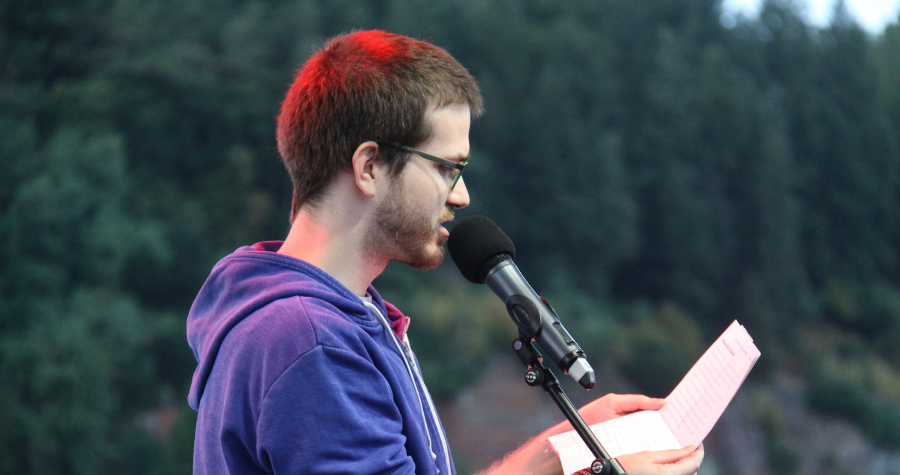 Ich bekam gegen Mittag eine Facebook Nachricht, dass gerade ein Slammer ausgefallen wäre und ob ich nicht Lust hätte mich auf einer weiteren Bühne zu versuchen. Und wie das so ist, hatte ich sowieso vor dahin zu gehen und dann kann man auch mal eben oben stehen.
